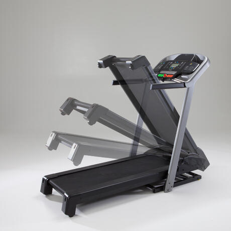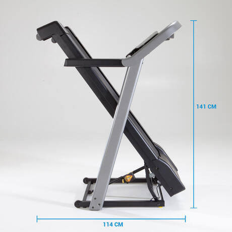 Беговая дорожка T540 складывается, это позволяет экономить пространство в то время, когда тренажер не используется. Для хранения дорожки в сложенном виде вам требуется пространство на полу площадью 114x79 см.