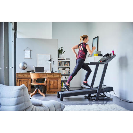 Бесшумный тренажер с беговой поверхностью, идеальной для бега со скоростью до 16 км/ч. Тренажер T540 совместим с виртуальным тренером Domyos Eсonnected для помощи в тренировках.