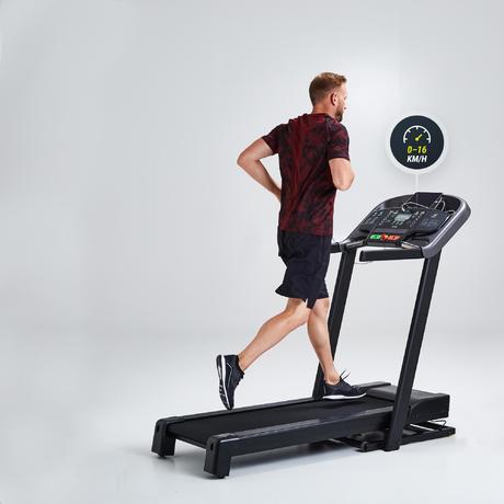 Позволяет идти и бежать со скоростью до 16 км/ч и наклоном от 0 до 10%.