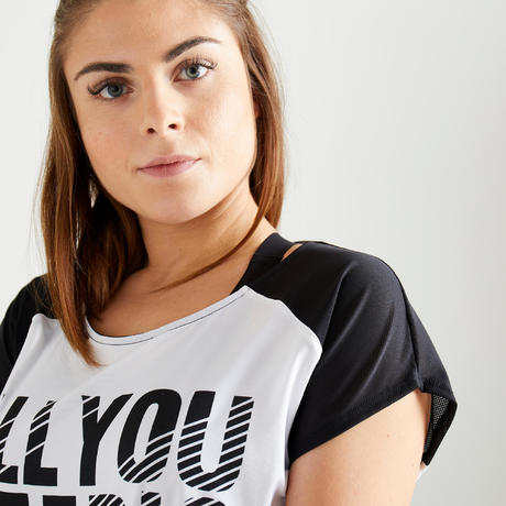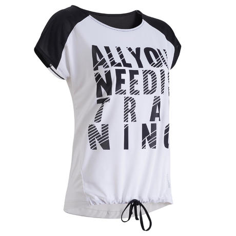 Футболка для фитнеса и кардиотренировок женская бело-черная с принтом 120