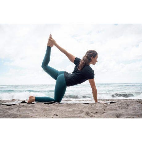 Благодаря эластану в составе ткани футболка подходит для выполнения всех асан.