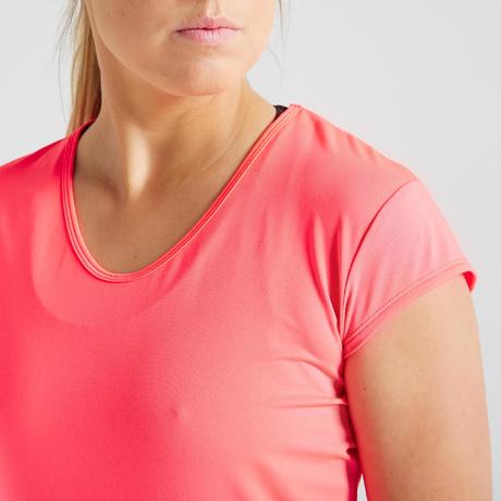 Во время занятий фитнесом эта футболка с короткими рукавами подчеркивает силуэт благодаря прямому покрою и V-образному вырезу. Выберите легкую футболку, если хотите оставаться в сухости!