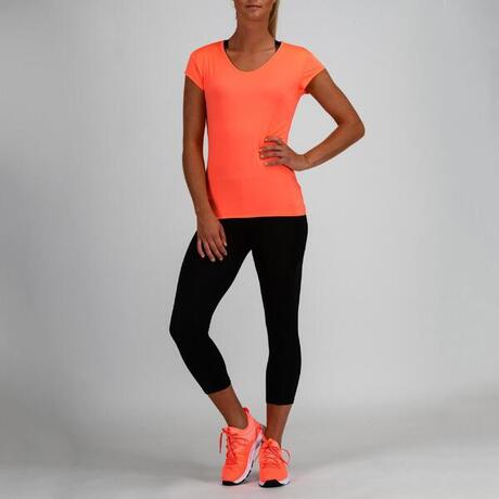 Во время занятий фитнесом эта футболка с короткими рукавами подчеркивает силуэт благодаря прямому покрою и V-образному вырезу. Выберите легкую футболку, если хотите оставаться в сухости!